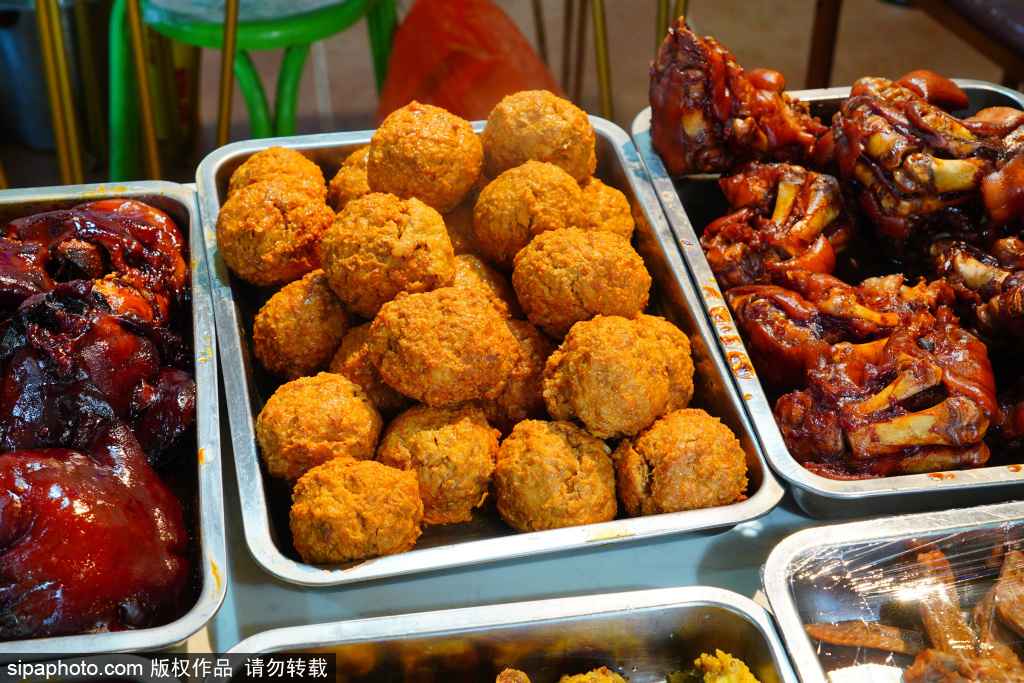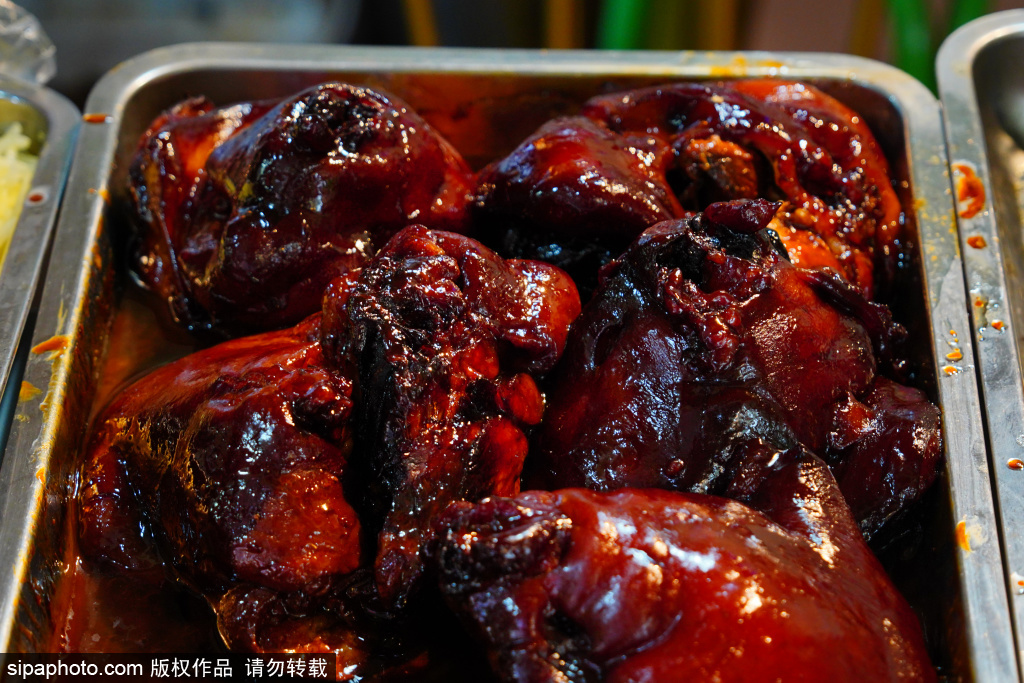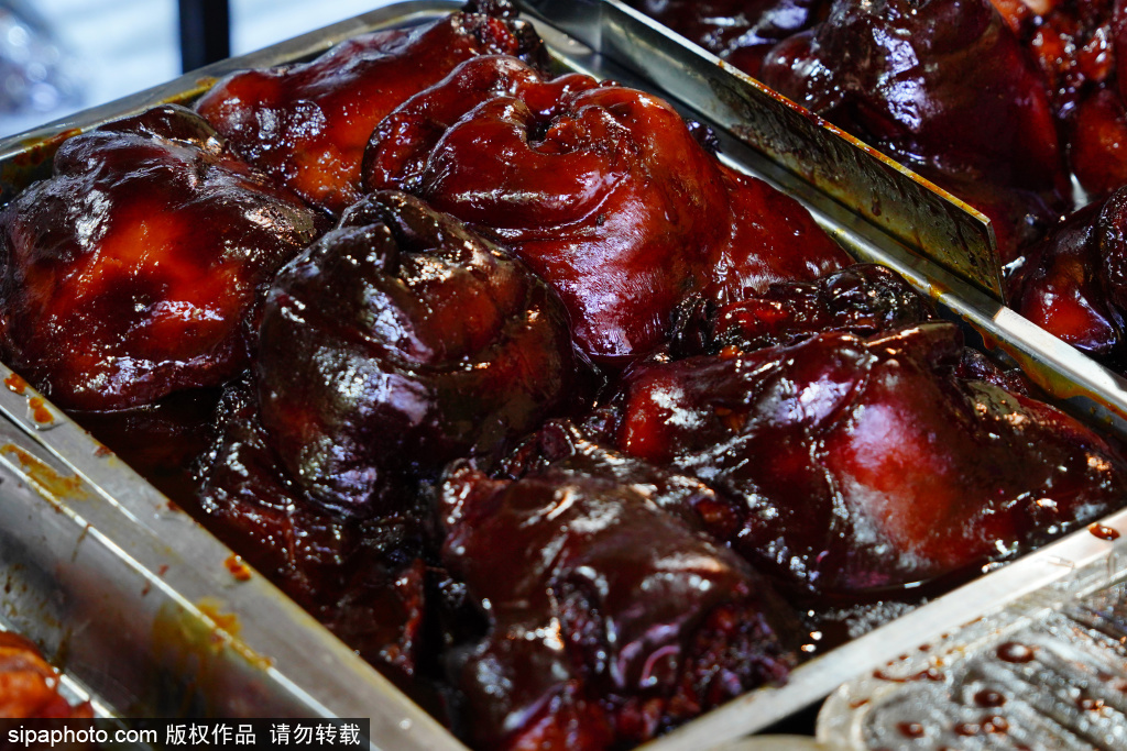 位于什刹海鸦儿胡同内的“老北京熟食光亮龙哥肘子”店。肘子使用改良天福号配方,色泽红亮、肉质酥软、香气扑鼻。店内还提供自制国宴狮子头、猪耳朵、猪蹄等熟食,烟火气十足。