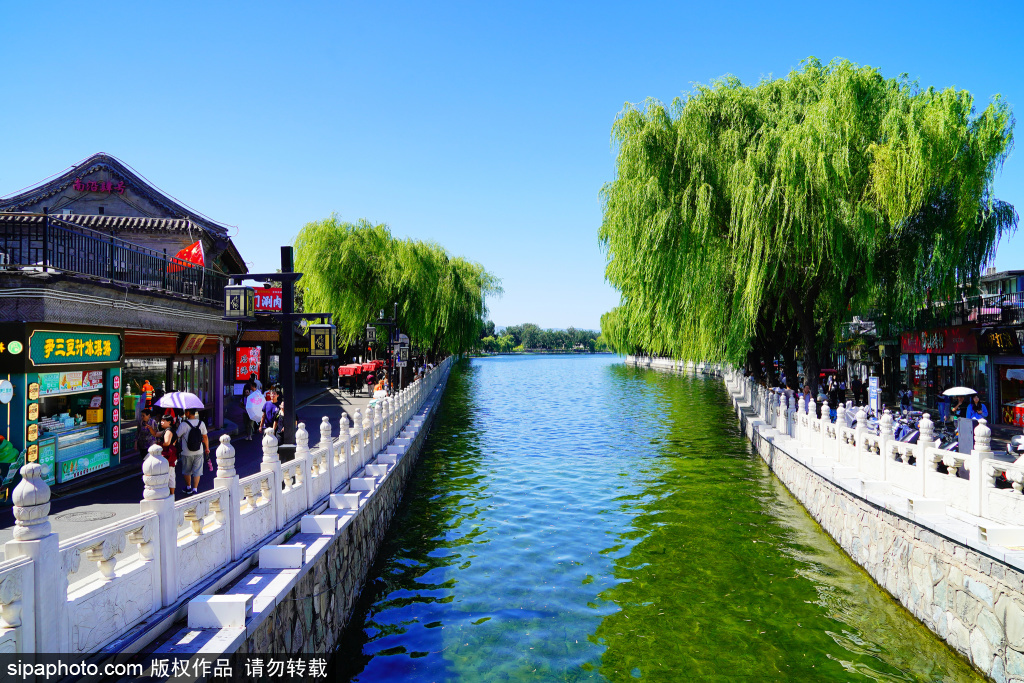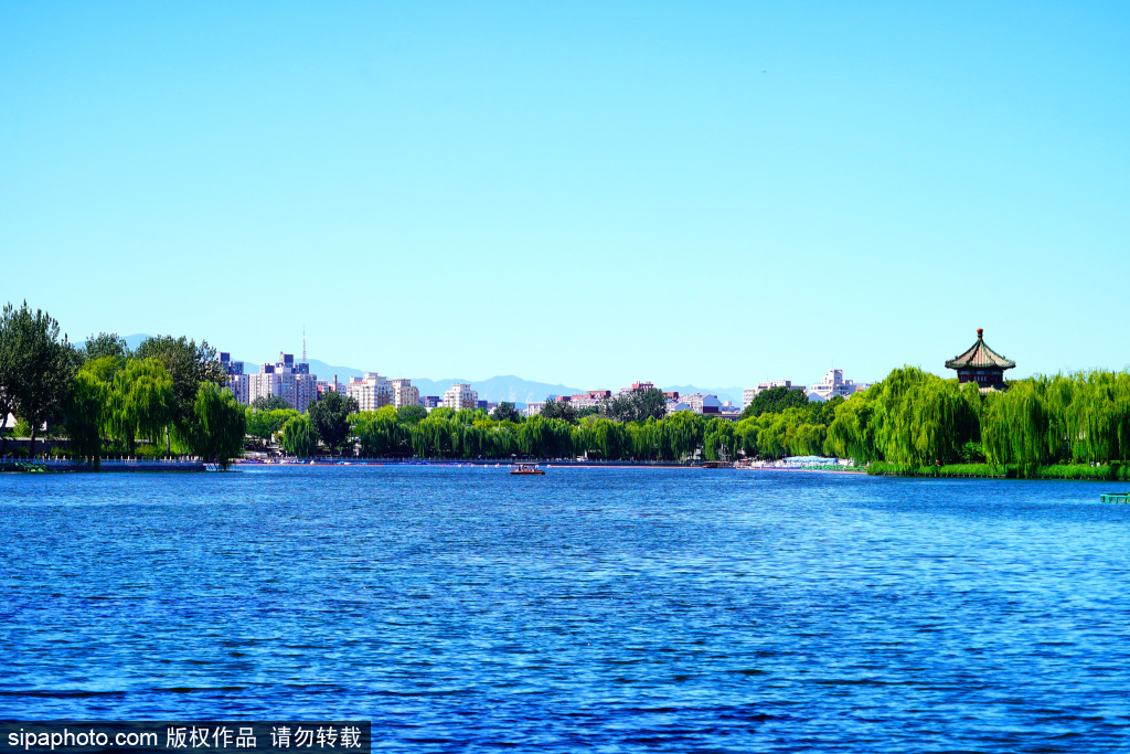 在什刹海银锭桥头西望,碧波倒映着绿柳,扁舟点缀其间,远处的群山依稀掩映,构成一幅美妙的“银锭观山”金秋画卷。“银锭观山”是清朝时期民间评选出的“小燕京八景”之一,是北京城内什刹海银锭桥展现山水城相融的景观视廊。