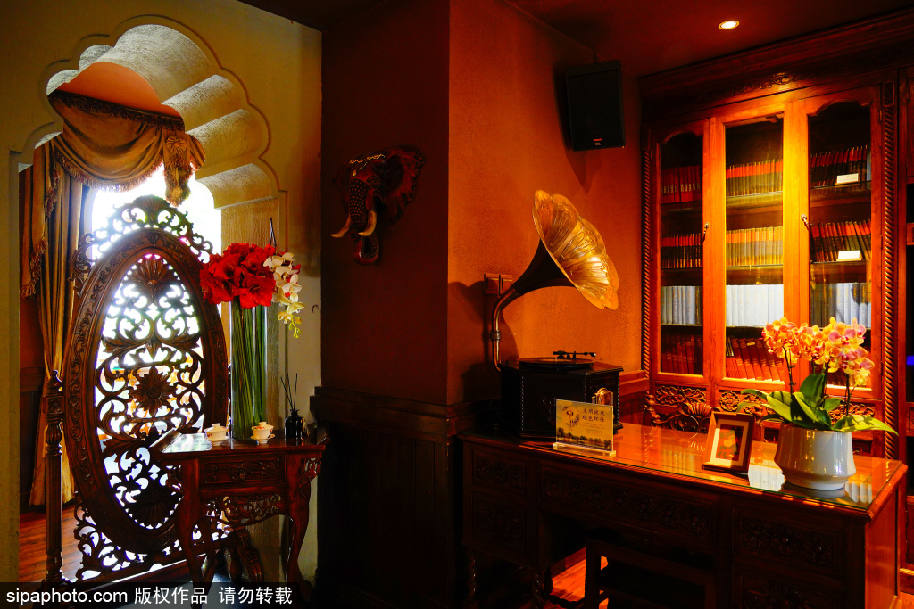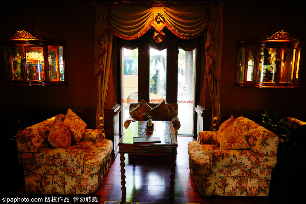 东方饭店老房子1918咖啡厅,各种壁画、摆饰、灯具、桌椅等都颇具民国风,仿佛一下子把人拉回到那个时代。