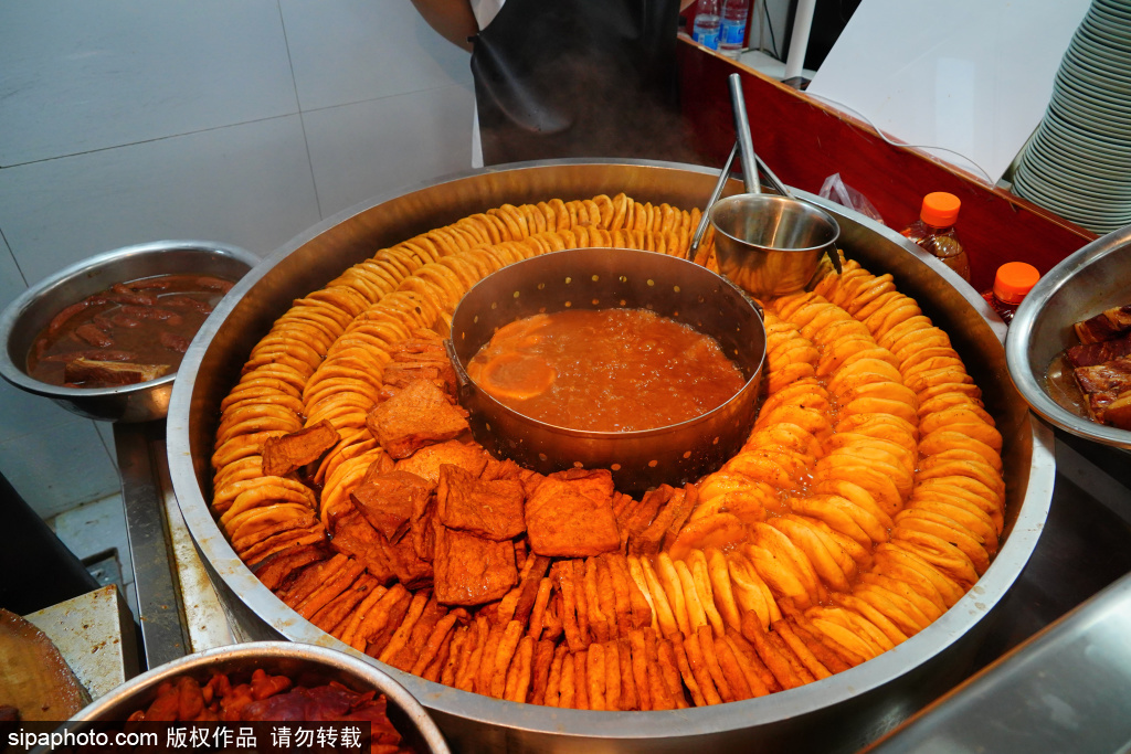 门框胡同百年卤煮(新街口店)。如今的卤煮火烧已经是北京小吃中的代表,很多经营卤煮火烧的门店都是清晨就开始制作,到了中午快要吃饭的时间,才可以到软烂入味的境界。