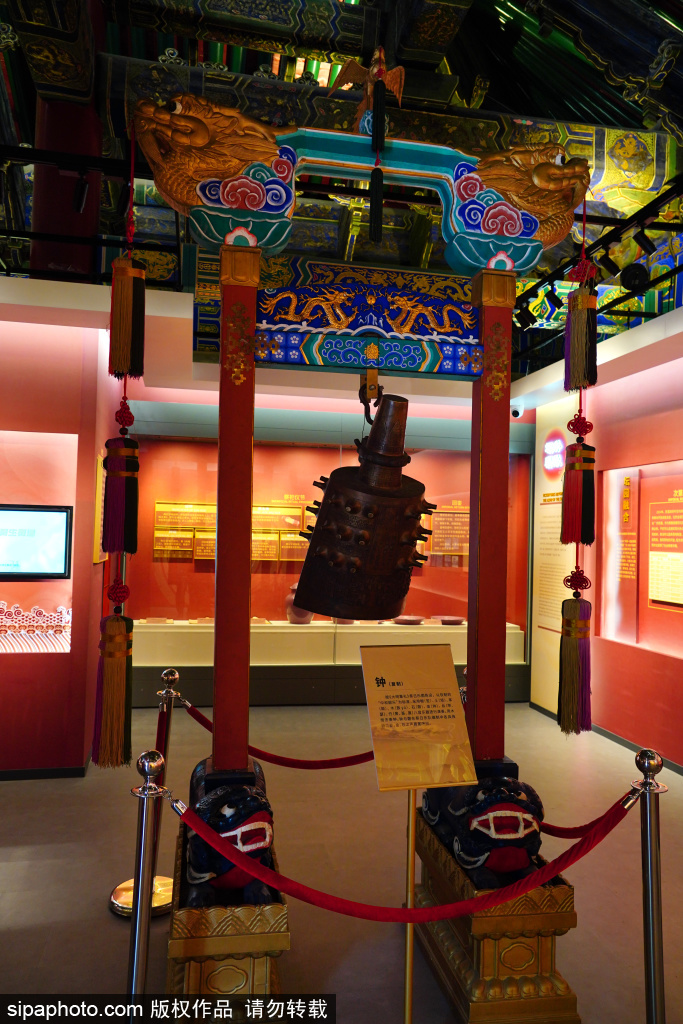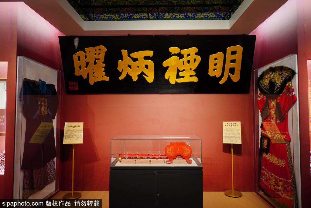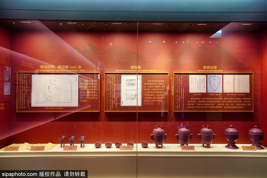 10月11日,日坛公园具服殿,“日出东方——朝日坛历史文化展”。具服殿是明清皇帝祭日时休息更衣之所,有着深厚的历史文化底蕴。殿内雕梁画栋、金碧辉煌,一张张图片、一段段文字的展示,向观众讲述着日坛公园的历史。