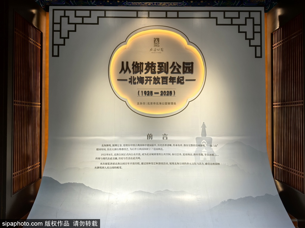 “从御苑到公园——北海开放百年纪”展览(1925-2025)在北海公园阐福寺亮相,展览通过百余幅新老照片、史志资料及视频,讲述北海公园百年开放历程。