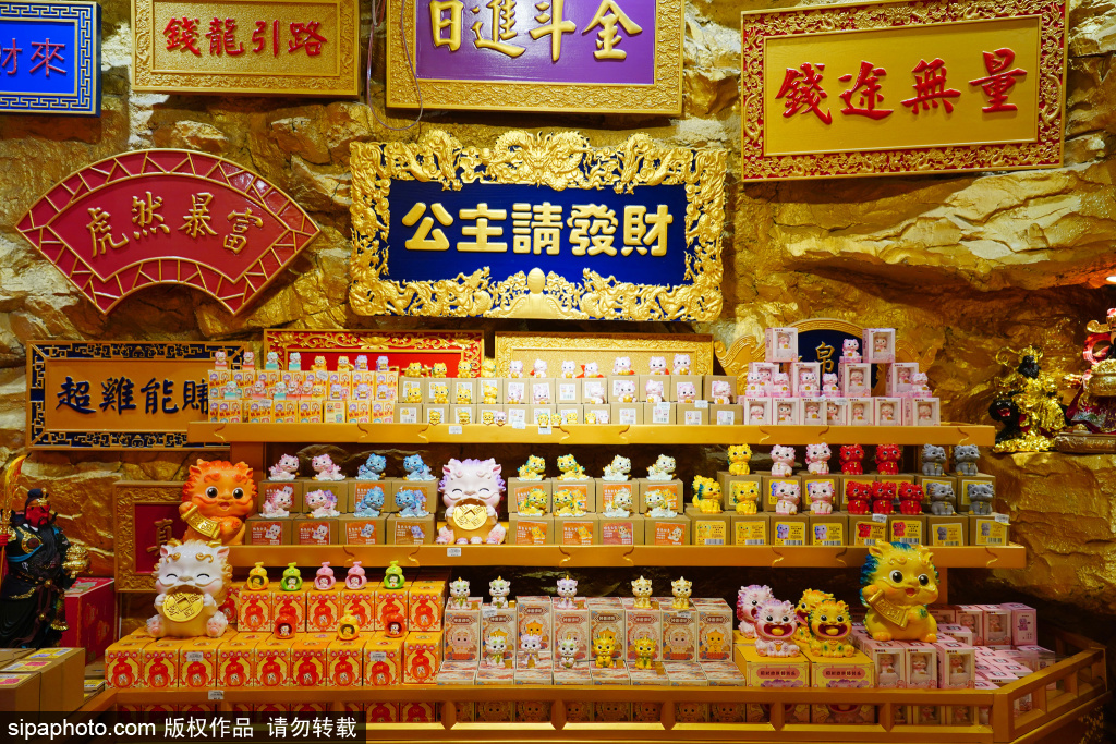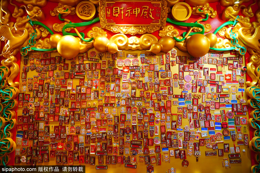 王府井喜悦内的“有仙儿财神殿”,踏入店内仿佛置身于金色祥云之中。这是融合传统与潮流的求财祈福新打卡点。殿内有多尊金光闪闪的财神像,造型精美,国潮风十足。