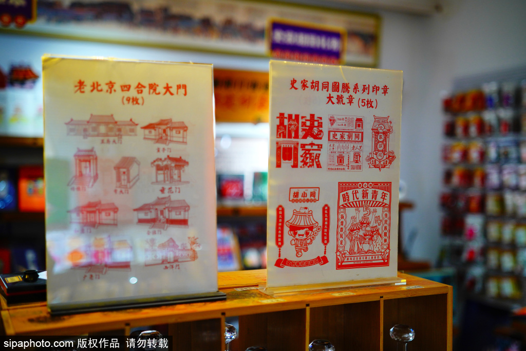 上百枚的胡同文化印章、独具特色的瓦片画、老物件等,在这间40多平方米的小空间里,各类文创产品记录下老北京的独特记忆,成为了北京胡同热门的网红打卡地。