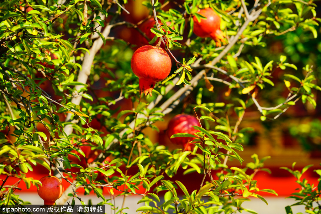 10月14日,金秋时节,北海公园阐福寺,石榴红宝石般挂枝头,宛如一盏盏小巧玲珑的灯笼。在这古老的皇家园林,勾勒出一幅生机勃勃的秋日丰收图景。