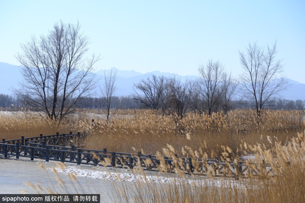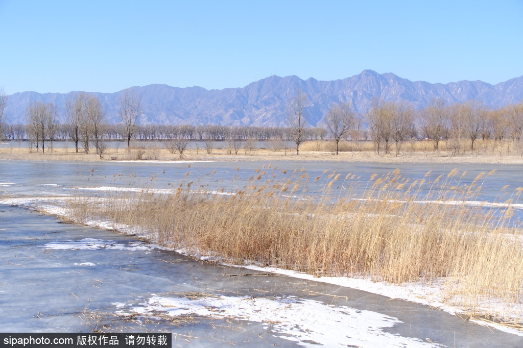 延庆,冬日的野鸭湖天寒地冻,冰封湖面芦苇黄,一片北国好风光。