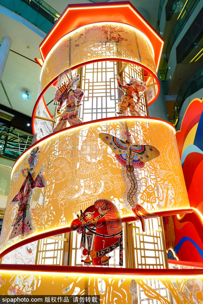 1月16日,西单大悦城商场内的“壹出好戏·捌方来潮”汪氏皮影非遗展。展览现场,一座高达8米、满载皮影艺术元素的大型主题展陈坐落于东大堂,气势恢宏;南北通道上方,十余米长的皮影花灯自高空垂悬而下,光影交织,营造出美轮美奂的视觉盛宴。展览旨在推动传统文化与现代商业空间深度融合,让古老技艺在当代场域焕发新生,彰显文化自信与民族自信,推动商业空间与文化价值共融发展。