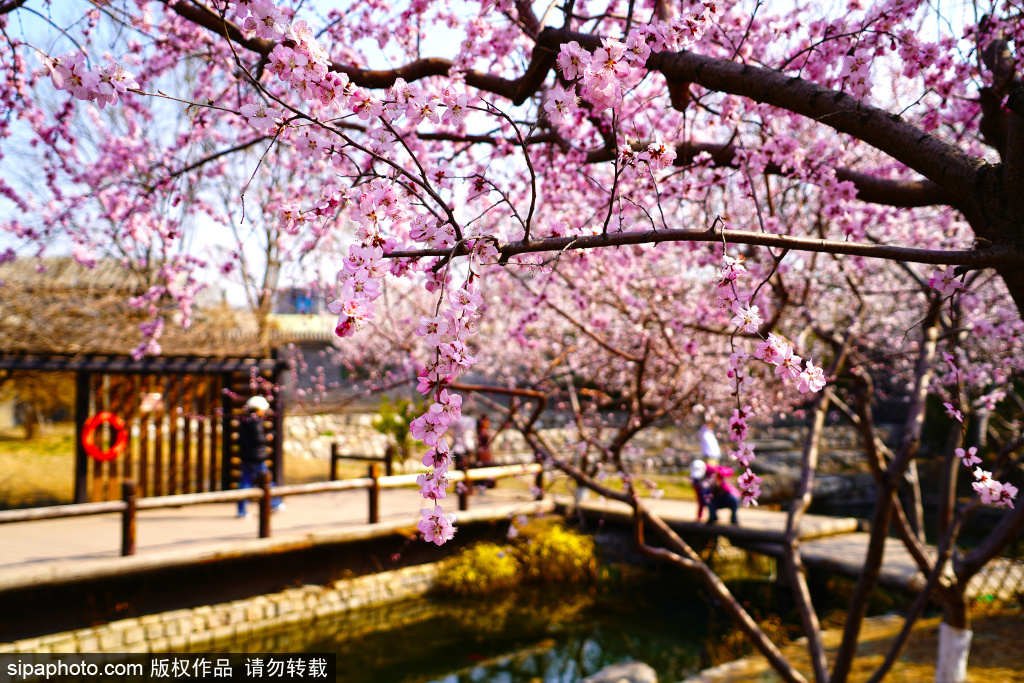 3月16日,前门三里河公园桃花盛开,繁花似锦,春天裹着缤纷与生机,宛若“桃花源”。