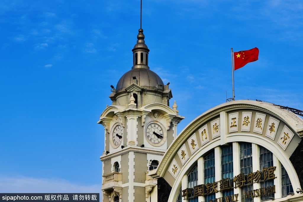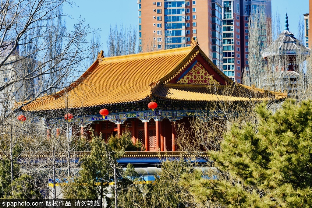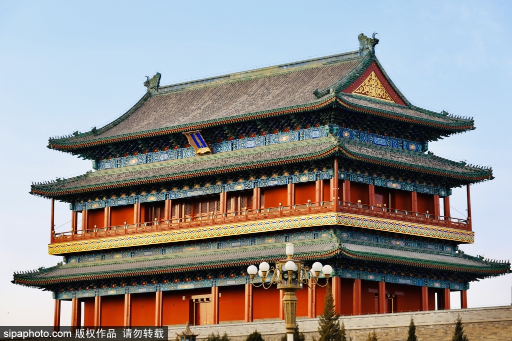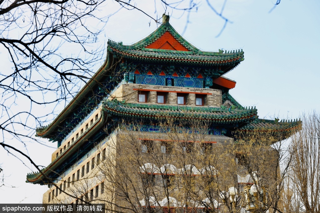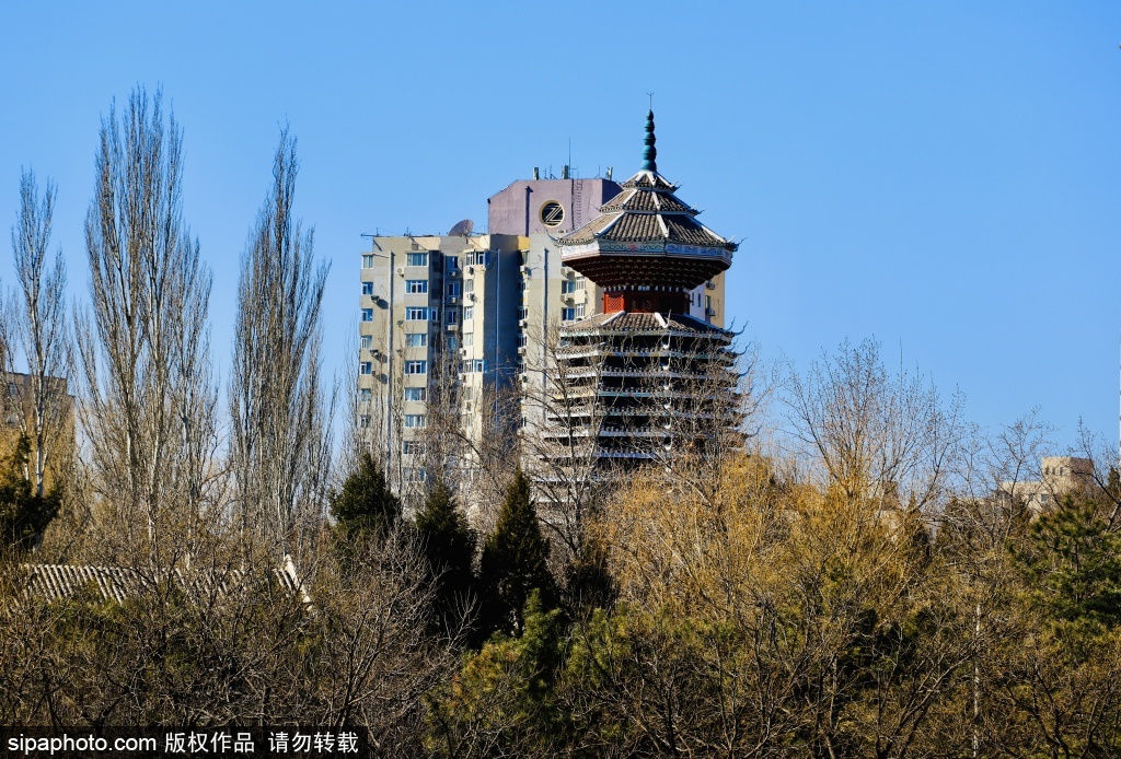 近日,北京春日蓝天下的标志性建筑风光,不仅有着位于中轴线上的正阳门和箭楼,还有著名的中国铁道博物馆、地标建筑中央电视塔、中华民族园。