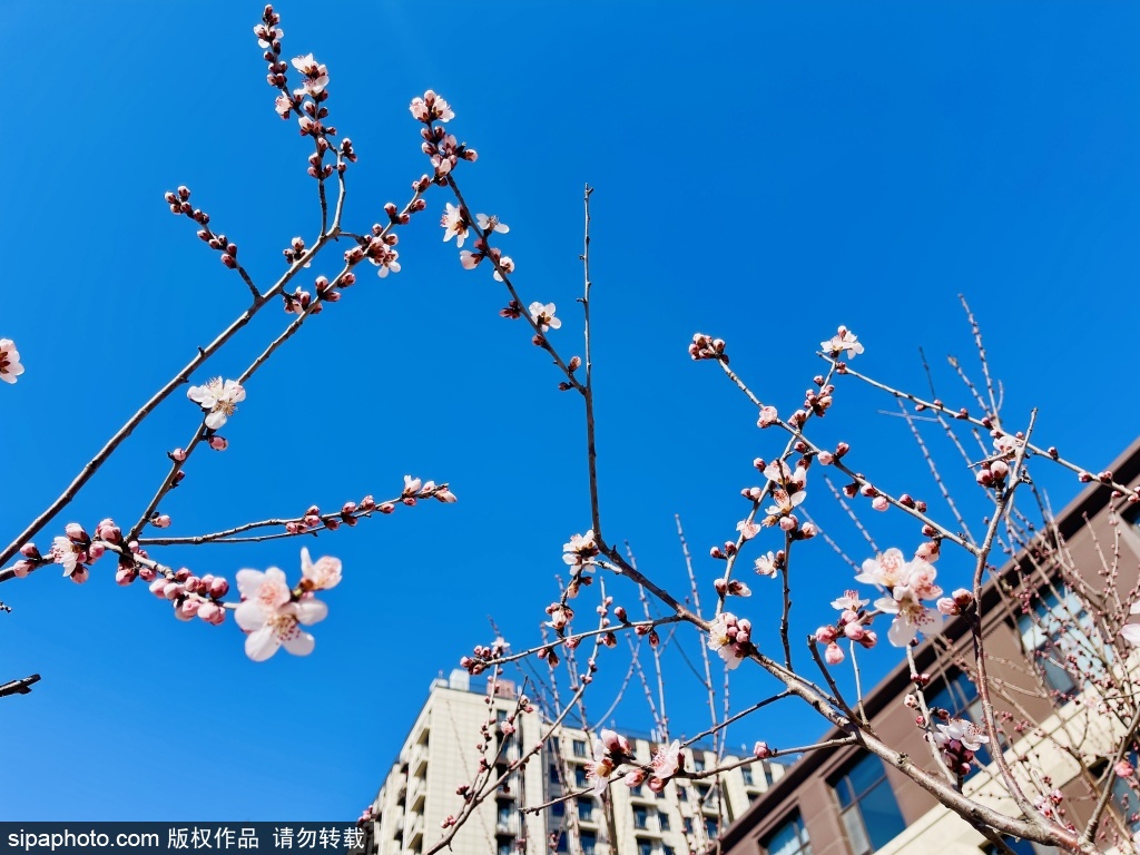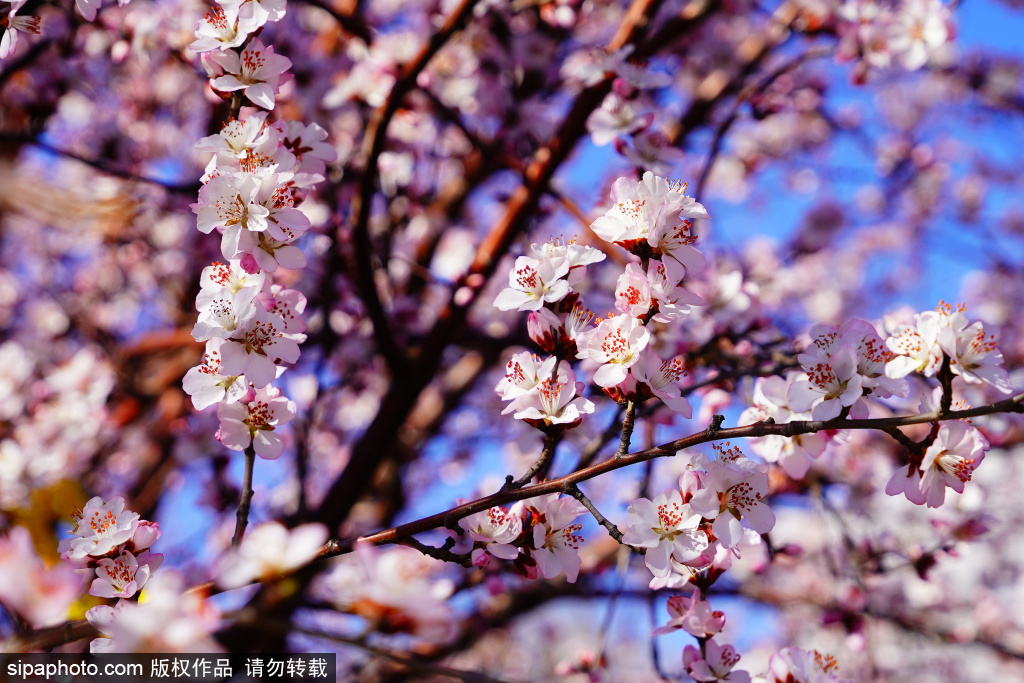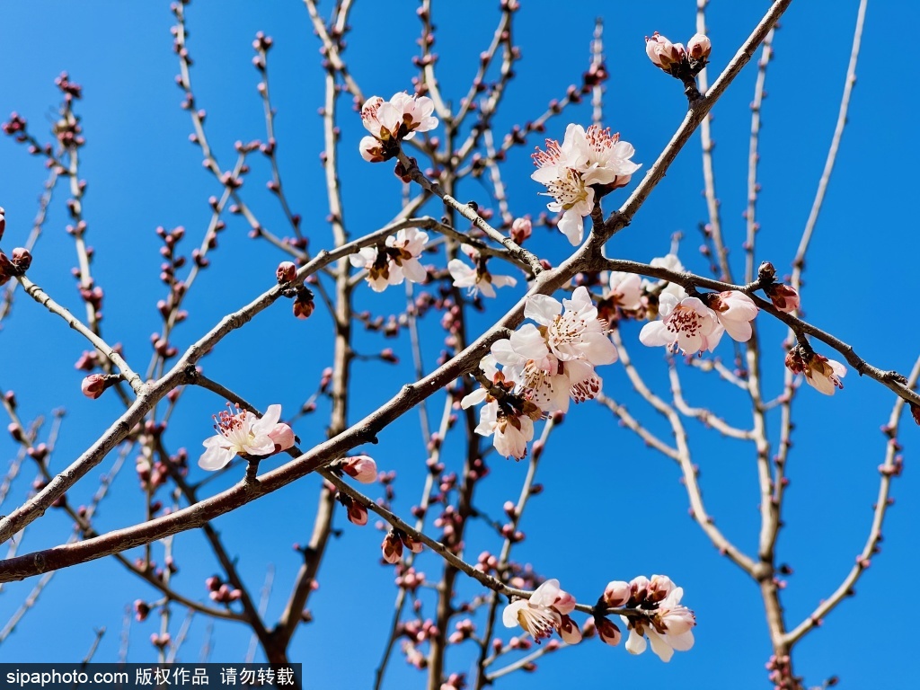 陶然亭公园春意浓,红灯笼与桃花相映成趣