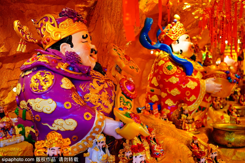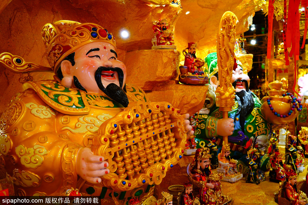 位于鼓楼东大街的“财神”文创店。该店位于黄瓦增福财神庙旁,内部金碧辉煌,一尊尊怀抱金元宝的财神笑面相迎。近期,在各大购物中心,一种融合传统文化与现代消费的新业态正悄然兴起——以财神为主题的祈福文创店成为年轻人的新宠。