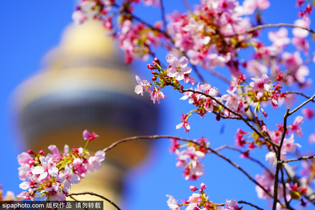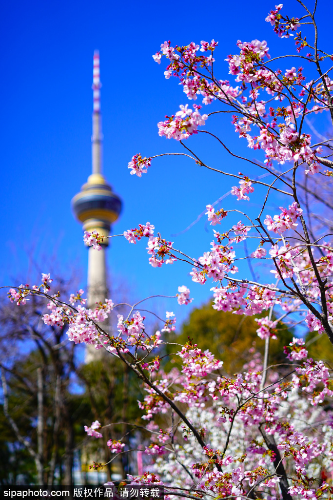 3月18日,玉渊潭公园内的樱花盛开,与远处中央电视塔同框,美不胜收。当日,玉渊潭公园第三十七届樱花文化活动暨第七届春季花卉联展拉开帷幕,众多市民来到这里踏春赏花。