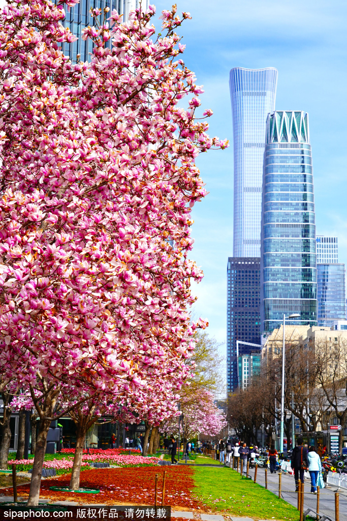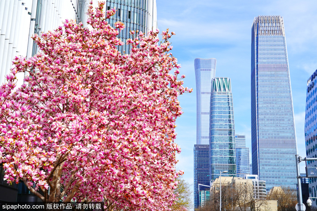 3月27日,CBD摩天楼宇间春意满满。位于光华路的玉兰花盛放,粉嫩的花瓣带着少女般的娇羞,仿佛瞬间放缓都市的忙碌节奏,温暖又治愈。