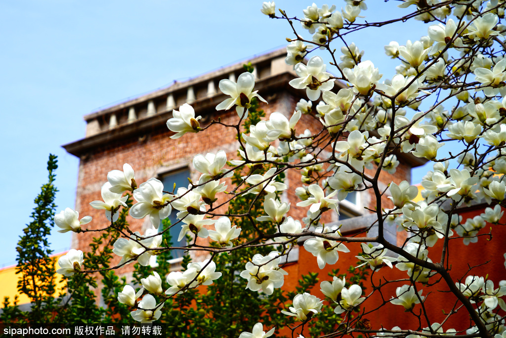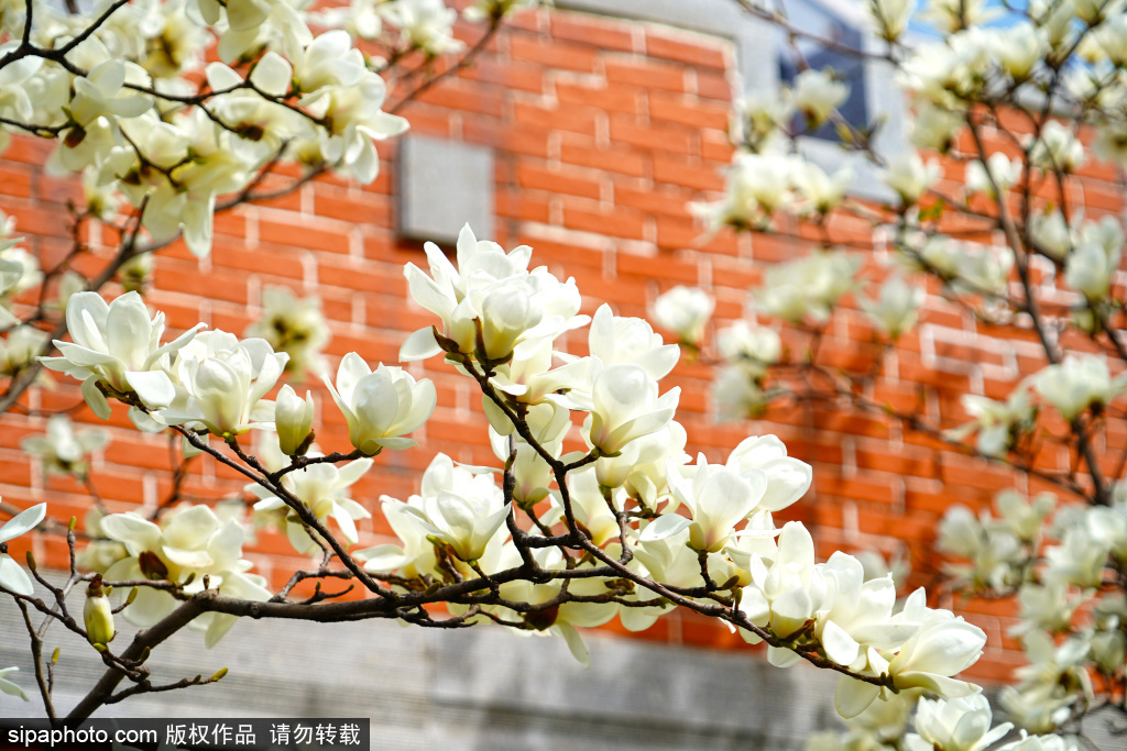 3月27日,台基厂十字路口的东北角,比利时使馆旧址前的玉兰花盛放,洁白如玉的花朵在微风中轻轻摇曳,仿佛在诉说着百年的故事。