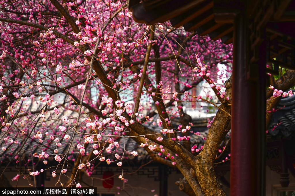 3月26日,紫竹院公园友贤山馆内的杏梅盛放。隐匿于紫竹院公园的“江南梦境”,目前正被杏梅的芬芳唤醒,这里的春天有江南的风气,美景如画。