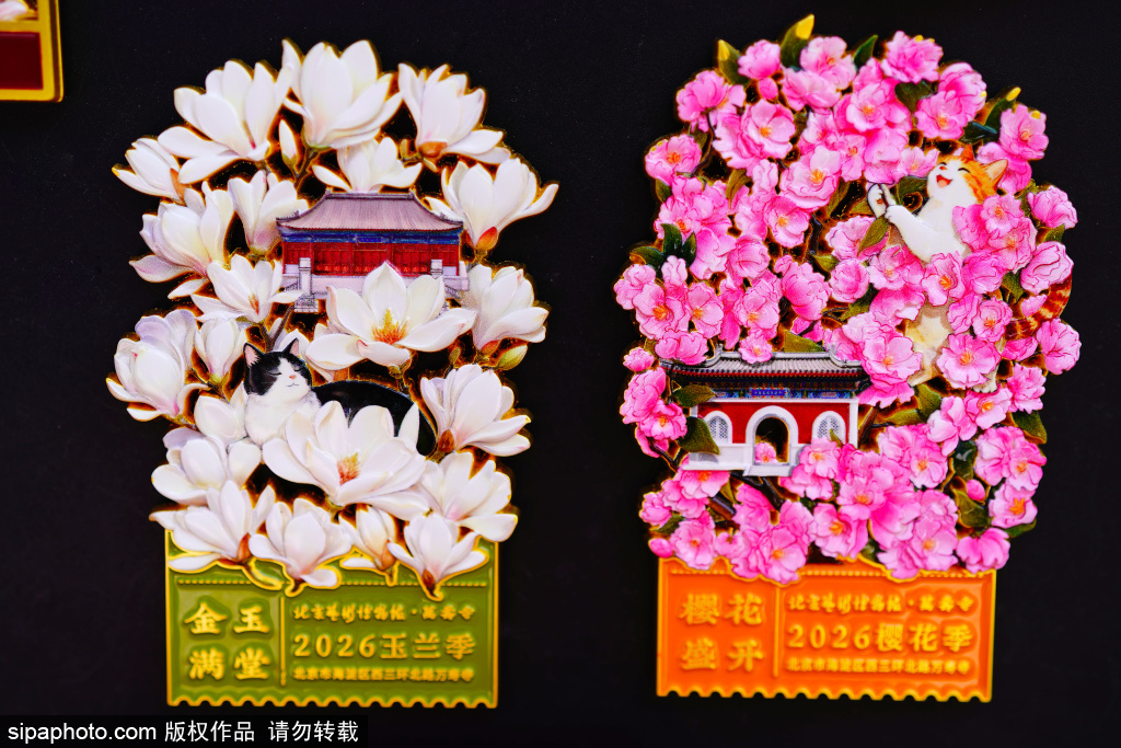3月25日,坐落在万寿寺的北京艺术博物馆,一系列春日限定文创走红,新推出的冰箱贴成为热销品,吸引许多观众赶早场到博物馆里寻春,把春景打包带回家。