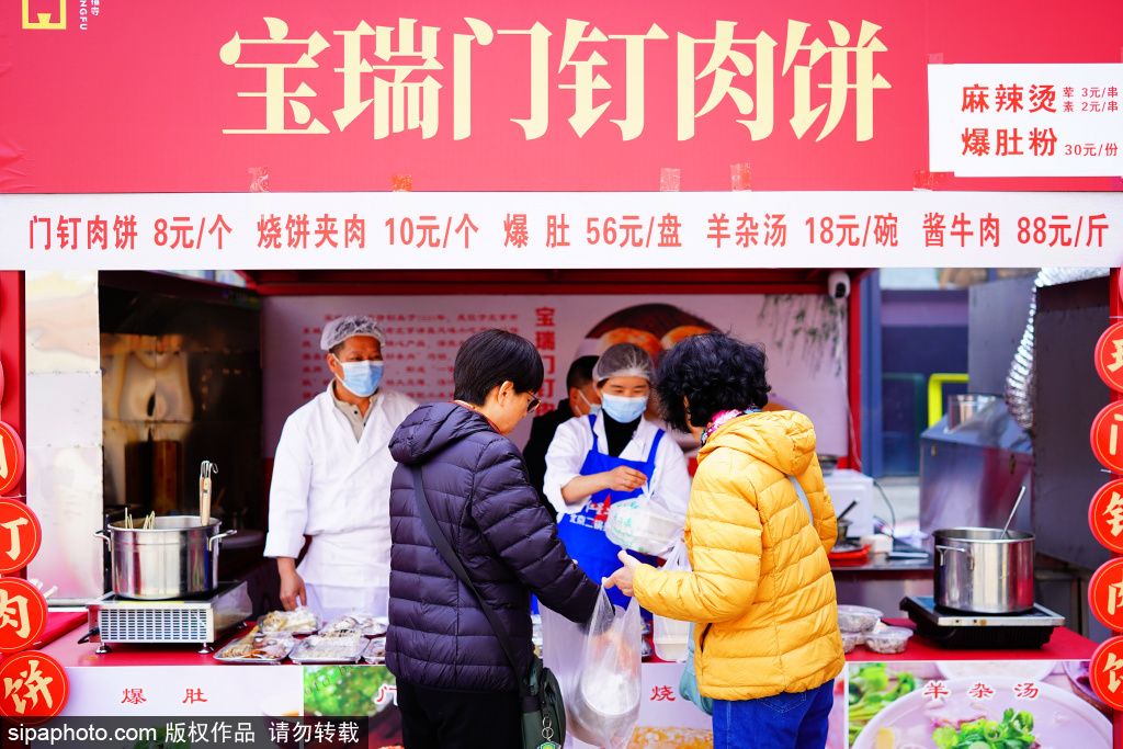 3月23日,隆福寺街区内,王致和、明华烧麦馆、沪江香满楼、隆福寺小吃店、宝瑞门钉肉饼、白魁老字号饭庄等摊位亮相“隆福潮集”。