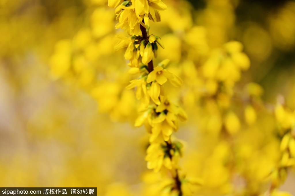 3月21日,方庄体育公园繁花满庭芳。初春时节,园内山桃热烈绽放、连翘金黄满枝,粉黄相映,春意盎然,一步一景皆是温柔春光。