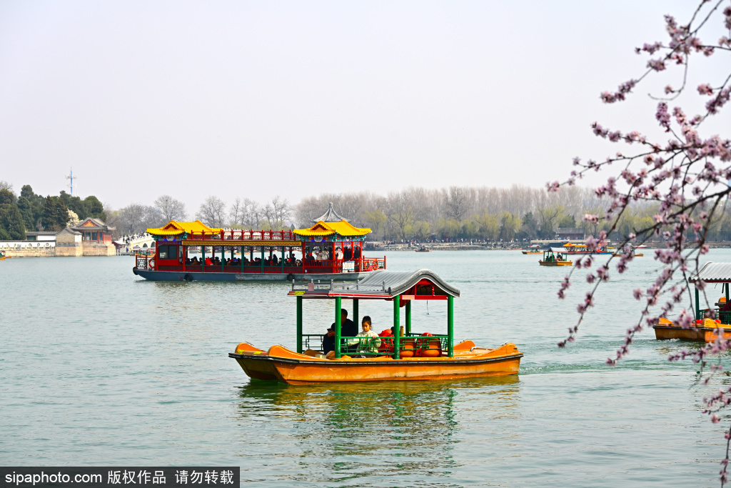 3月21日,市民乘坐各式游船在颐和园湖面上游玩,乐享春日游船美好时光。游船与山桃花同框,美景如画。近日,颐和园、北海公园、陶然亭公园、玉渊潭公园、紫竹院公园等五家北京市属公园游船同步开航,邀游客泛舟湖上,感受春日公园的别样美景。