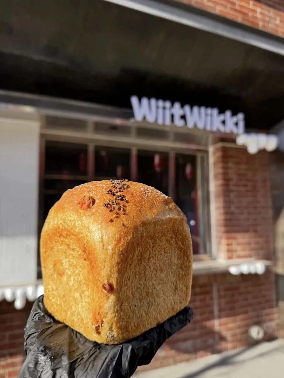 藏在大望路的一家迷你酸面包主食面包铺,虽然只有40平方米,但依旧全开放式的操作间和甜品柜,透过橱窗可以看见师傅们揉面、烘烤的全过程,这种“坦诚相见”让人吃得特别放心。