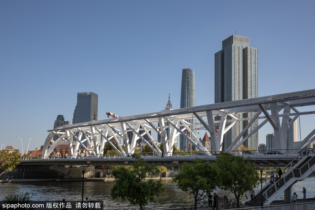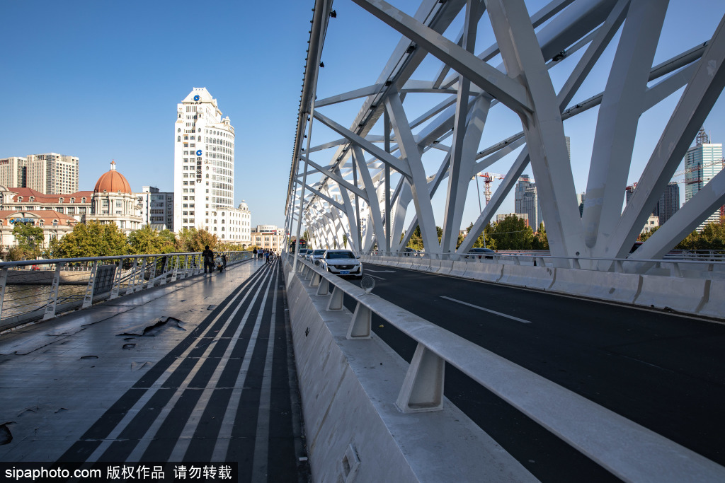 天津进步桥是天津海河干流上重要交通设施,西起南开区通南路,东接河北区进步道,梁桥采用自锚式桁吊组合钢结构,全长508米、宽30.7米。