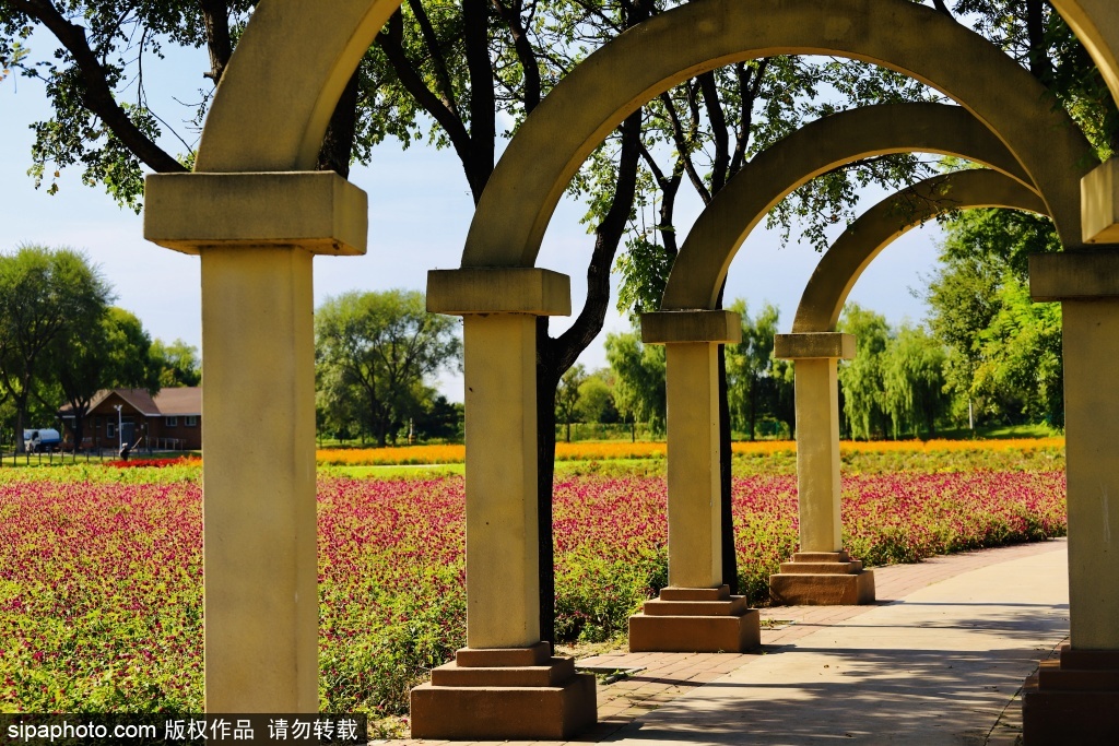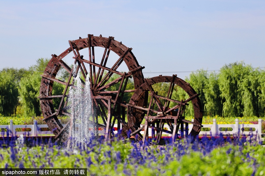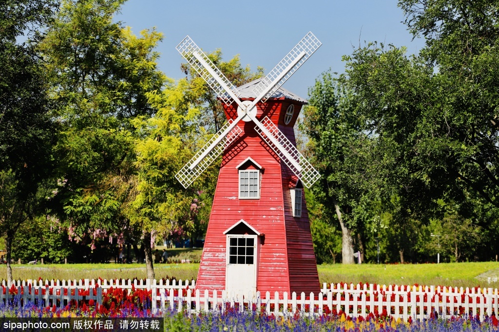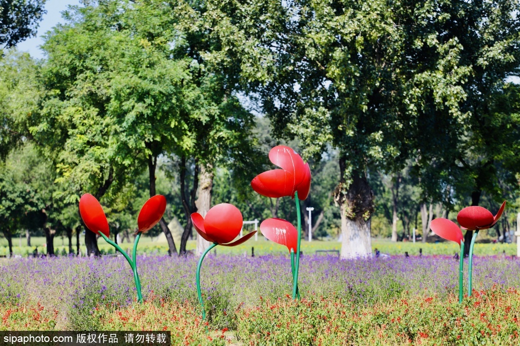9月27日,北京紫谷伊甸园秋季以马鞭草花海为主题景观,搭配欧式建筑和艺术装置,适合赏花、摄影和休闲。