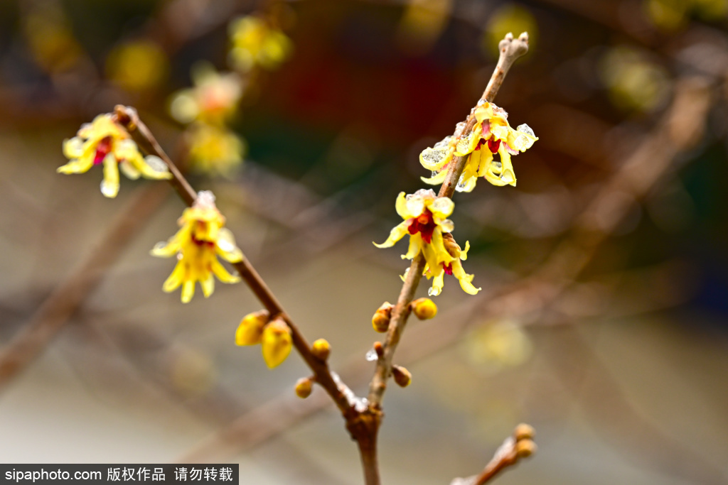 2月27日,春雪过后,大观园秋爽斋红心蜡梅已悄然绽放。朵朵簇簇相拥,花瓣上伴着冰霜与水珠,重重叠叠,芬艳烂漫。蜡梅,是凛冽寒冬与早春交接时最动人的信使,当万物尚在萧瑟中沉睡,那一树金黄已悄然绽放,用清冽的幽香与耀眼的花朵,预告着京城即将苏醒的春天。