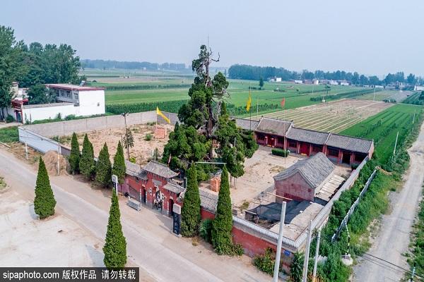 河北省临漳县习文乡靳彭城村,三国时期曹操的拴马桩——千年柏魁。古柏高22.5米,树冠覆盖直径约...