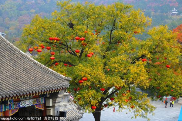 2019年11月6日,深秋时节,北京八大处公园里色彩斑斓,彩叶满山坡。大悲寺庭院内的两株古银杏树,树龄800余...