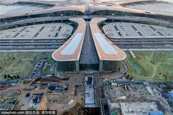 2019年1月4日,无人机航拍的“世界最大空港”大兴国际机场,航站楼内部精装修和设备安装已完成80%,9月30日前...