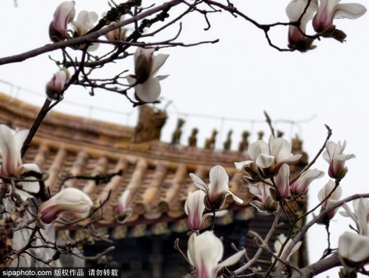 3月14日,故宫西北角楼下,数株玉兰悄然绽放,洁白花瓣与巍峨角楼、红色宫墙相互辉映,构成一幅绝美的早春...