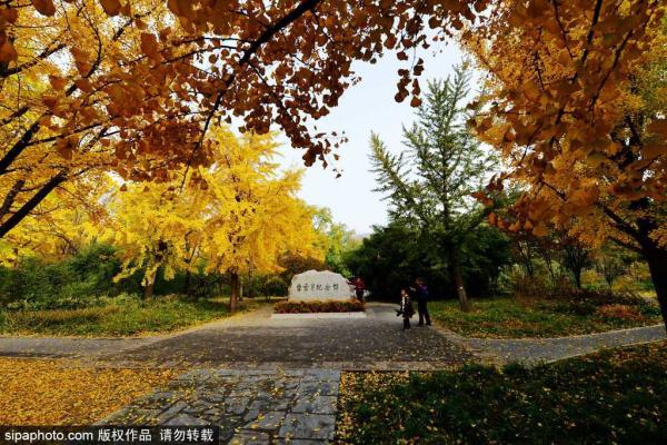 深秋时节,在北京植物园曹雪芹纪念馆,色彩斑斓的秋景吸引了无数游客的目光。