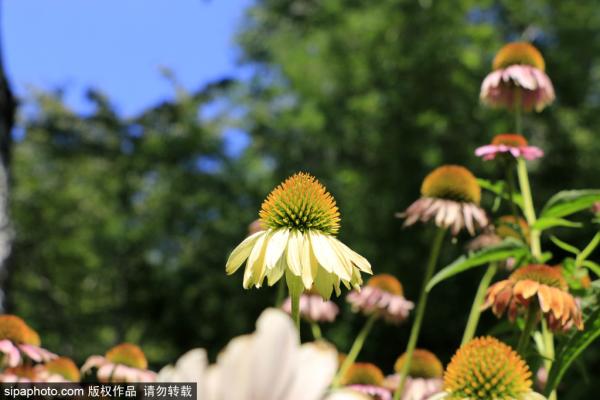 2023年7月9日,北京海淀,玉渊潭公园内的松果菊在夏日热情绽放,吸引游客关注。