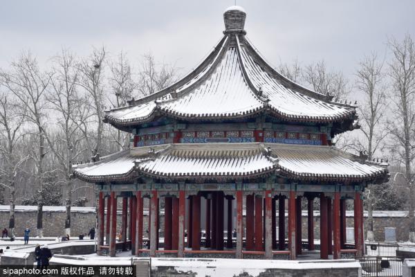2023年12月11日,北京,“瑞雪”降临京城,颐和园古建筑银装素裹如油画。
