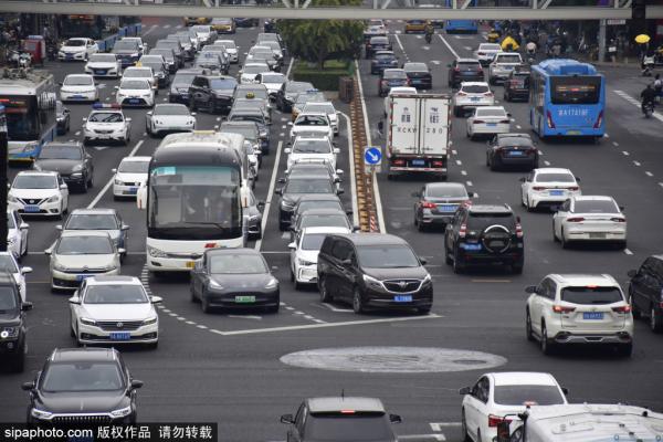 2023年9月24日,北京,中秋国庆黄金周临近,东单路口的晚高峰严重拥堵。