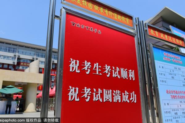 2023年6月5日,北京,高考考点已做好迎考准备,秩序维护设施、考试时间安排及考场分布提示展板已摆放到位,...