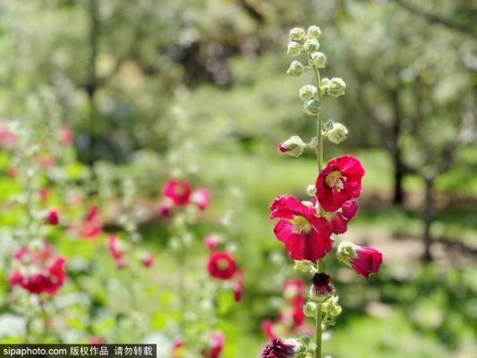 2023年6月6日,北京,夏日骄阳下北京城市运动休闲公园的蜀葵花都开好了。