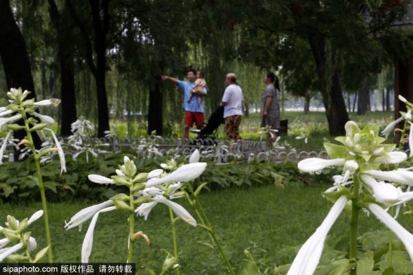 2023年7月11日,北京陶然亭公园荷花与水天共一色美不胜收。