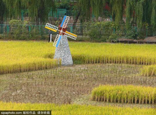 2023年10月8日,北京,近日丰台区王佐镇佃起村稻田画观赏区已是金黄一片,丰收在望,秋意浓浓,美景醉人。...