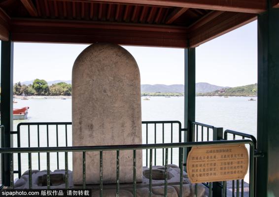 2023年6月6日,北京,颐和园石碑南侧御制诗文。此碑立于乾隆十六年(1751年),碑通高9.875米,碑四面阴刻...
