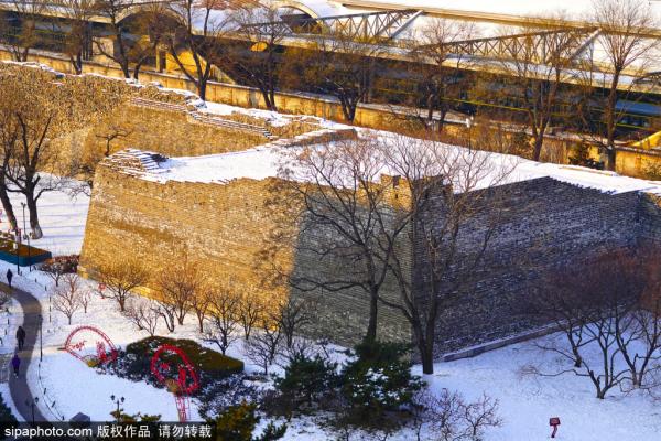 2023年12月18日,北京天气晴好,进入“全天冰冻”模式。明城墙遗址公园雪后风景如画。由于低温持续,城墙上的...