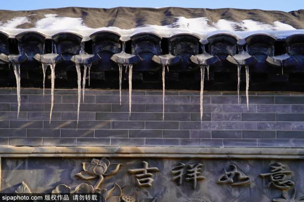 2023年12月18日,北京寒意十足,前门大街附近胡同内雪还未全部融化。由于化雪的过程气温低,屋檐滴水瓦处形...
