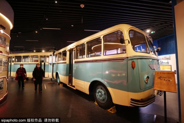 2023年12月12日,市民在北京公交馆观看“京一型”铰接式无轨电车。该车1959年研制成功。