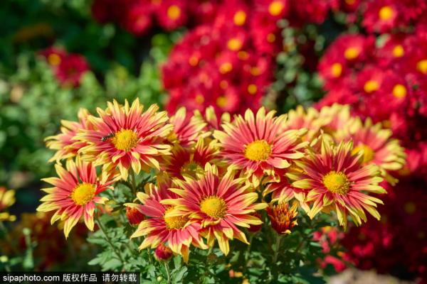 2023年10月9日,北京国家植物园内的菊花竞相开放,鲜艳夺目,市民游客游走在万花丛中,感受一场视觉盛宴。