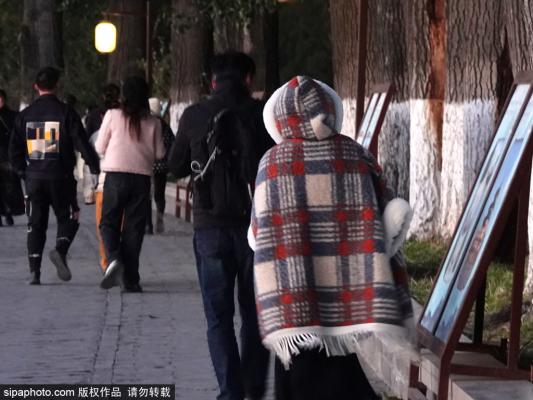 2023年11月11日,北京持续晴冷天气,游客包裹严实在寒风中游览颐和园。