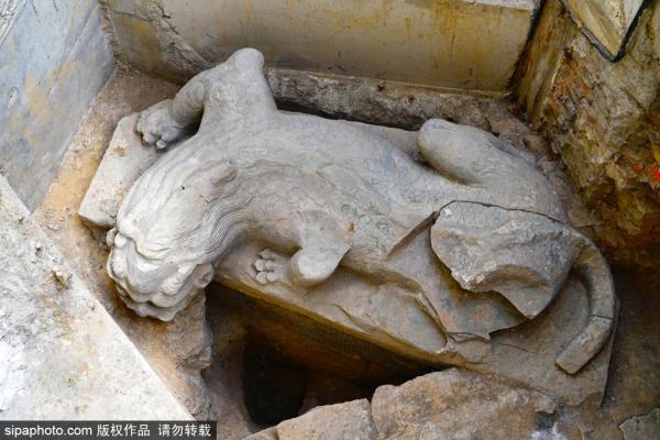 前门大街的正阳桥遗址考古方舱,镇水兽、正阳桥部分桥体、中部和南部券洞以及券洞顶部的吸水兽均在方舱内展...