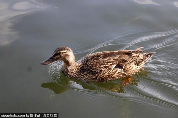 2023年7月22日,北京海淀玉渊潭公园内,出生不久的鸭宝宝跟着长辈在湖水中自在畅游。