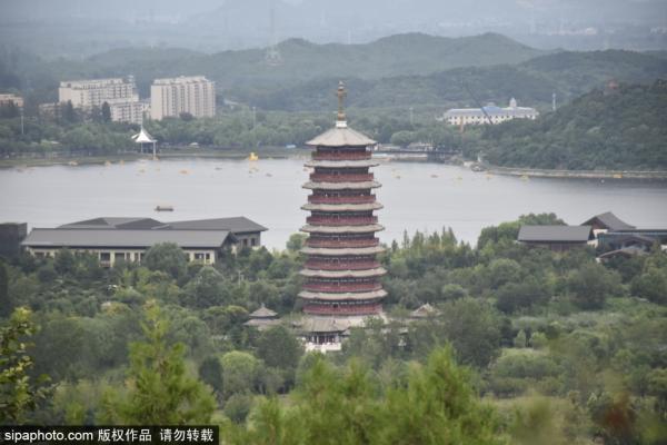 2023年8月27日,北京,雁栖湖的自然风光旖旎,秋日时节湖光山色、击水漫游、飘逸醉人,雁栖湖三面环山,北...