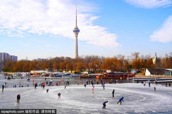 2023年12月25日,北京,市民在八一湖冰场上滑冰,享受冬天的惬意。冰场设置有教学区、滑冰练习区、专业滑冰...