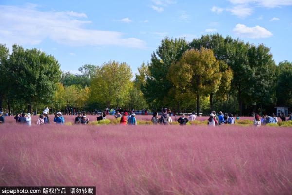 2023年10月13日,北京奥林匹克森林公园北园区秋色怡人,已经有树叶变黄,大片的粉黛子乱子草、地肤草、格桑...